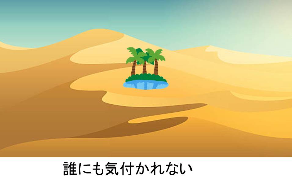 まだ誰もそこの場所にオアシスがあることを知らないのです。